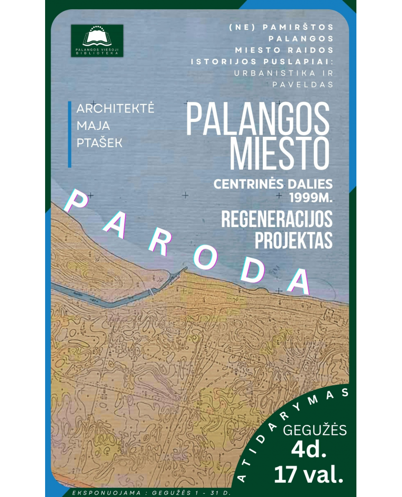 2026-05-04 Renginio data: 2026-05-04 17.00Gegužės 4 d. (pirmadienį) 17 val. Palangos viešosios bibliotekos parodų salėje architektė Maja Ptasek pristatys parodą, skirtą Palangos miesto centrinės dalies regeneracijos projektui (1999 m.) Tai vertingas reginys visiems, kuriems įdomu, kodėl mūsų kurortas atrodo būtent taip, ir kaip pavyko (ar nepavyko...) išsaugoti jo unikalų identitetą.