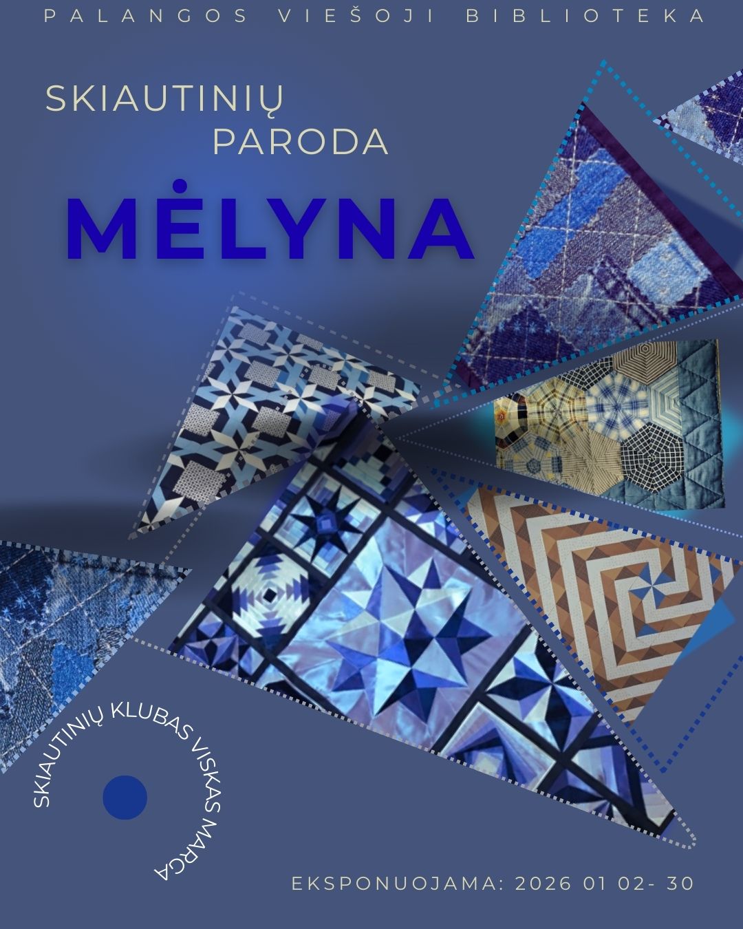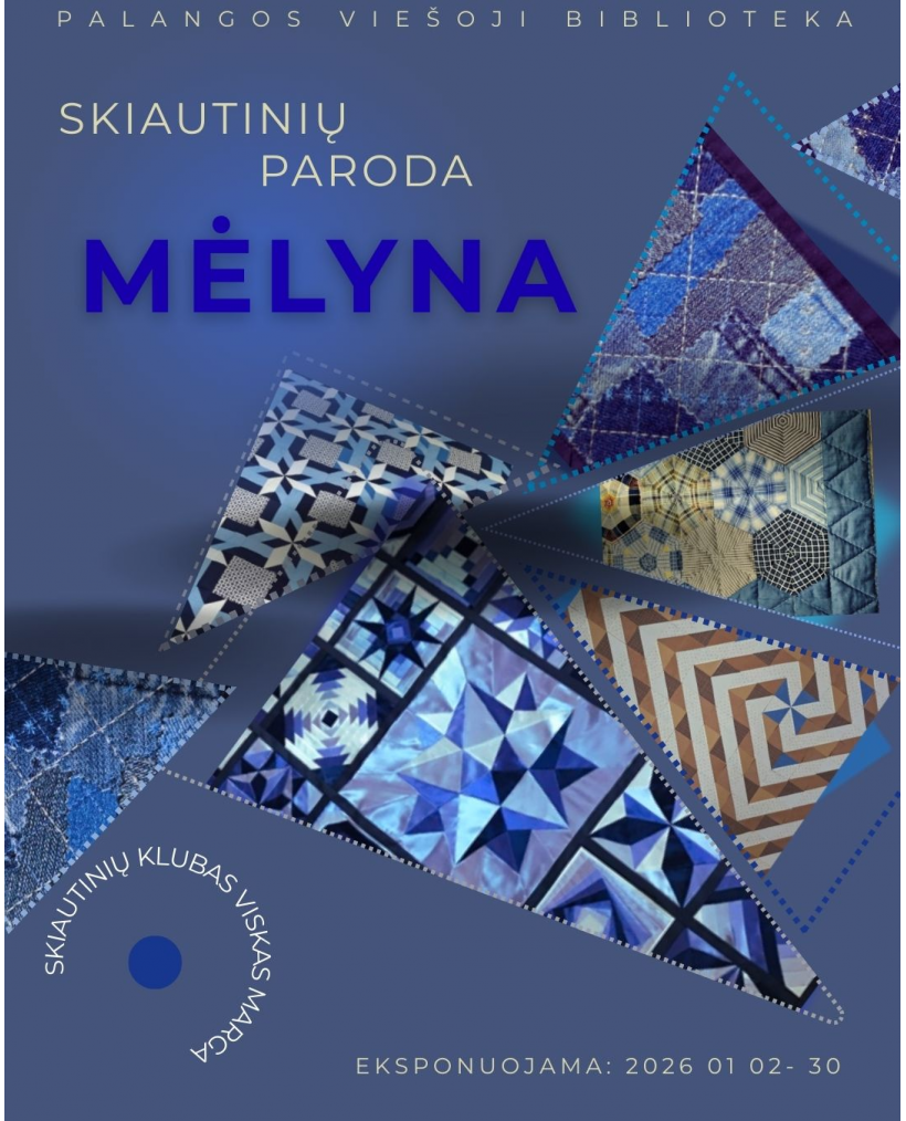 2026-01-02Palangos viešosios bibliotekos parodų salėje sausio 2 - 30 dienomis eksponuojama skiautinių klubo ,,Viskas marga“ paroda „Mėlyna“. Neoficialus skiautinių klubas subūrė 10 moterų, kurios kuria, dalinasi idėjomis, patirtimi ir puoselėja rankų darbo tradicijos tęstinumą šiuolaikiniame kontekste. Vyraujanti mėlyna spalva tapo jungiančiu parodos motyvu, simbolizuojančiu ramybę, gilumą ir Palangos pajūrio dvasią.