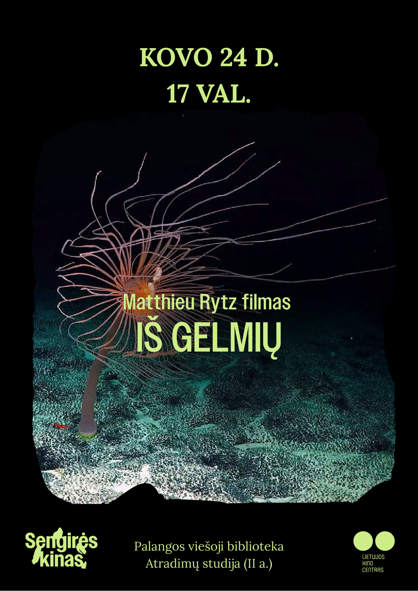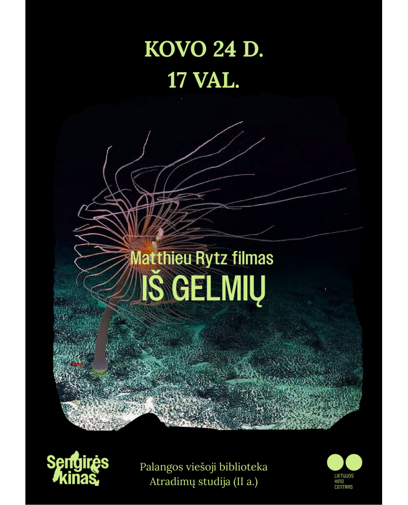 2026-03-24 Renginio data: 2026-03-24 17.00Kiną ir aplinkosaugą jungiantis projektas „Sengirės kinas“ kviečia į filmo peržiūrą Palangos viešojoje bibliotekoje. Kovo 24 d. 17 val. bus rodomas dokumentinis filmas „Iš gelmių“.